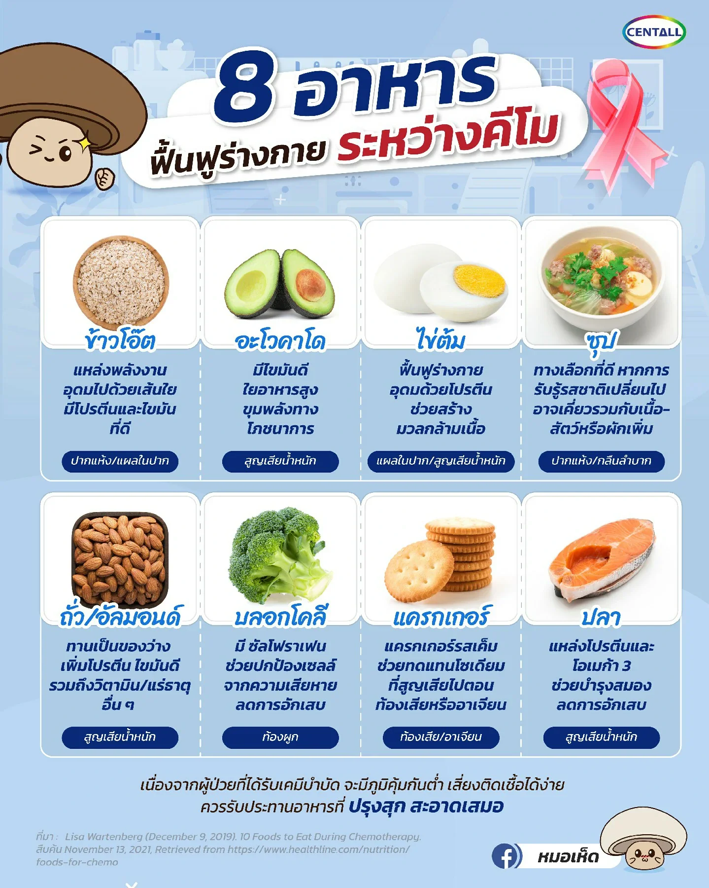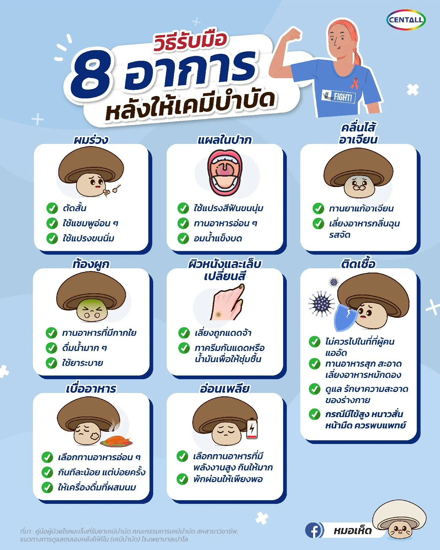 ที่มา: คู่มือการดูแลตนเองสำหรับผู้ป่วยมะเร็งที่ได้รับยาเคมีบำบัด โรงพยาบาลมะเร็งลพบุรี กรมการแพทย์ กระทรวงสาธารณสุข