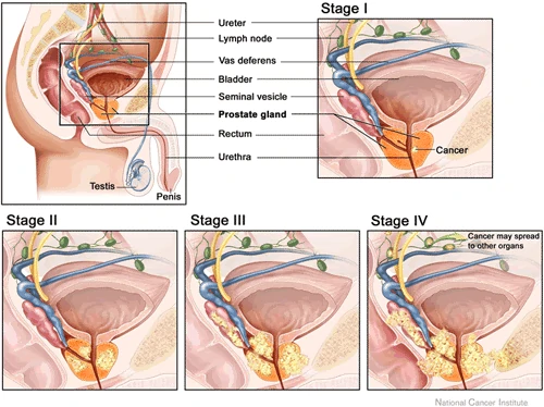 มะเร็งต่อมลูกหมากแบ่งออกเป็น 4 ระยะ ได้แก่